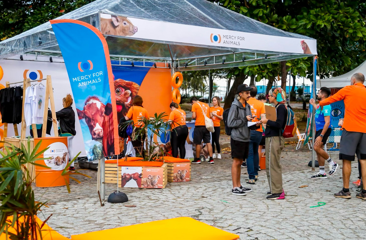 Com o objeto de arrecadar doações para ONG, foi idealizado e produzido um louge e uma loja Mercy for Animals para venda de itens da ONG durante o evento.